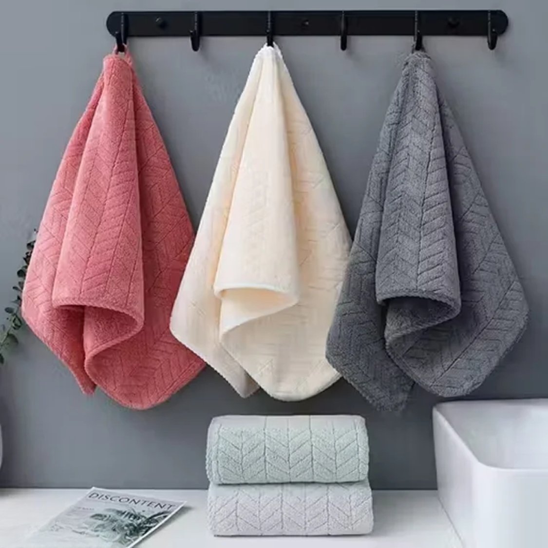 With their compact size (14″×21″) and elegant tones, they fit seamlessly into your modern lifestyle — whether hanging in your bathroom, gym locker, or travel bag.