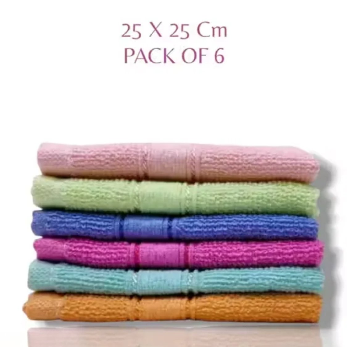 Soft Cotton Hand & Face Towels – Super Absorbent Napkins for Kitchen, Wash Basin & Gym (Pack of 6, 25×25 cm, Multicolor)